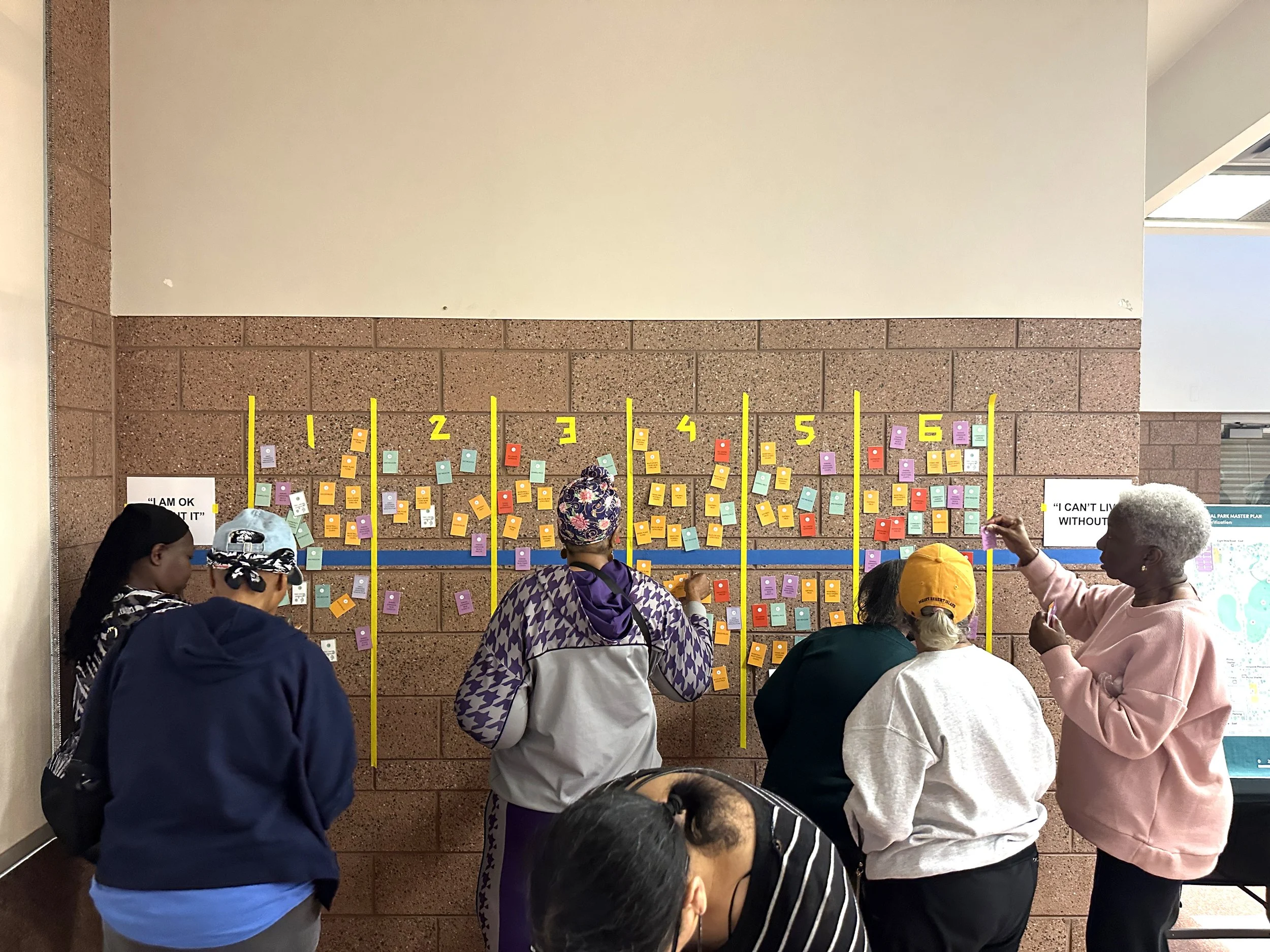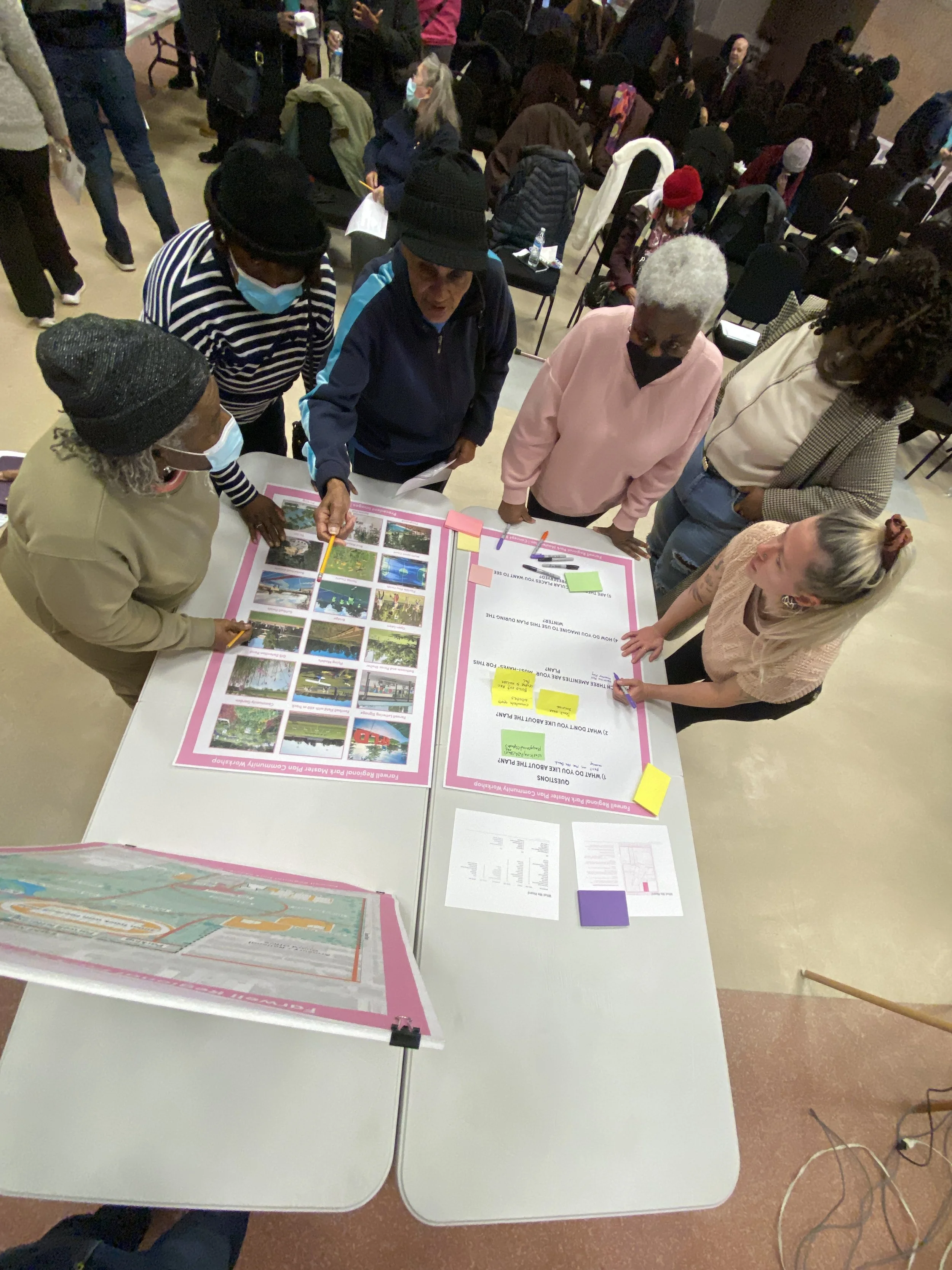 The engagement strategy included three (3) large public workshops, four (4) focus groups, one-on-one conversations with approximately eighty (80) individuals, and an online survey. Community members were engaged in accessible and familiar settings, with a range of activities designed to accommodate different levels of participation.