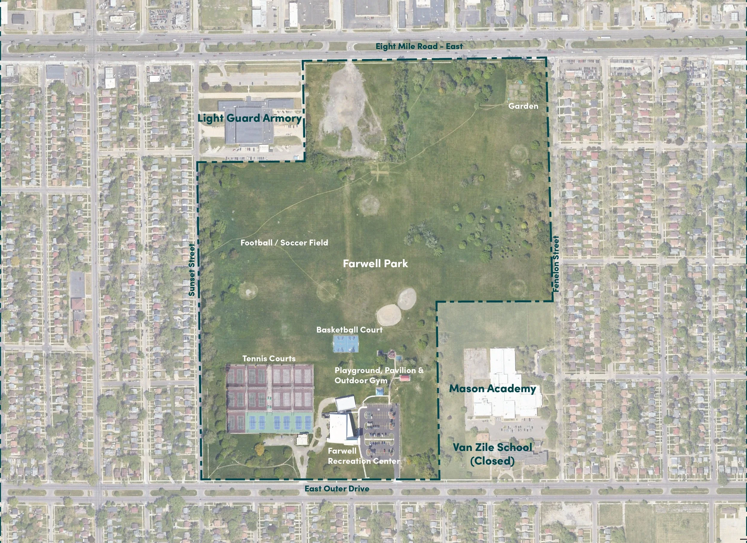 Farwell Park is home to a regional-serving recreation center and a cluster of athletic resources on Detroit’s East side.