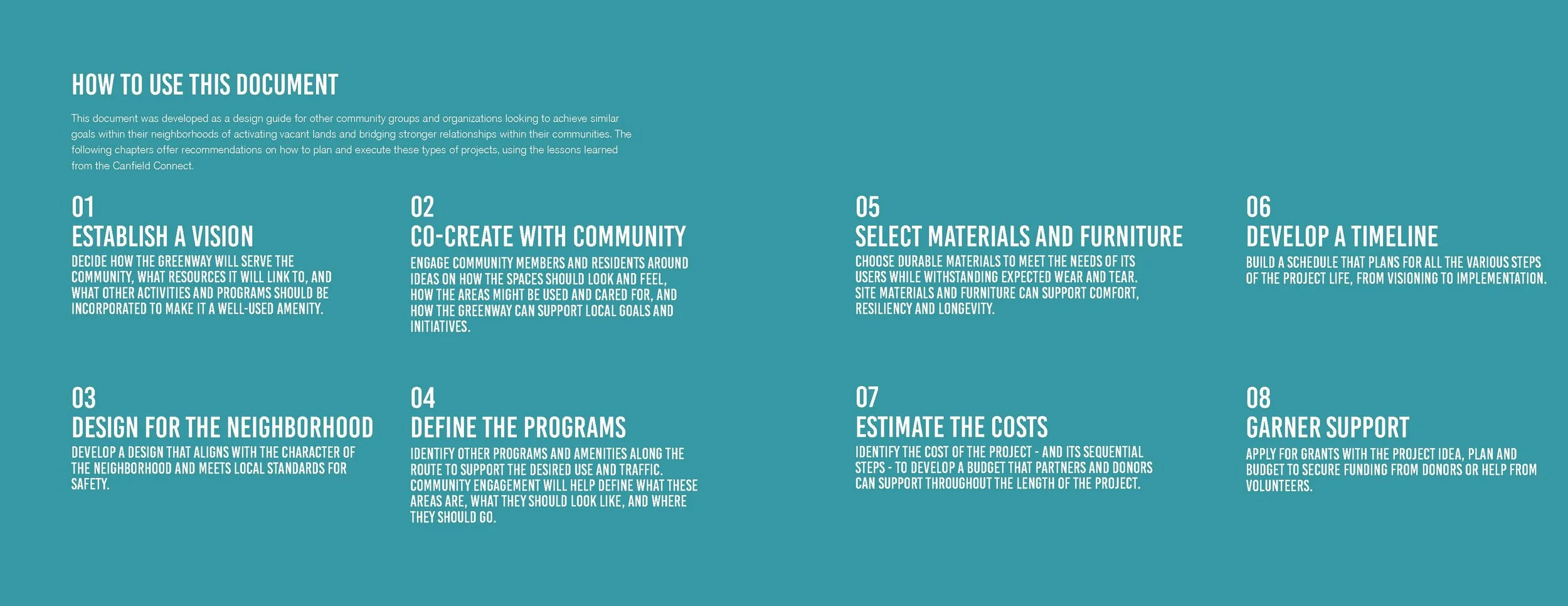 JIMA Studio led the design and documentation of the Connect’s design guidelines to support other community serving organizations looking to activate underutilized land in a similar fashion.